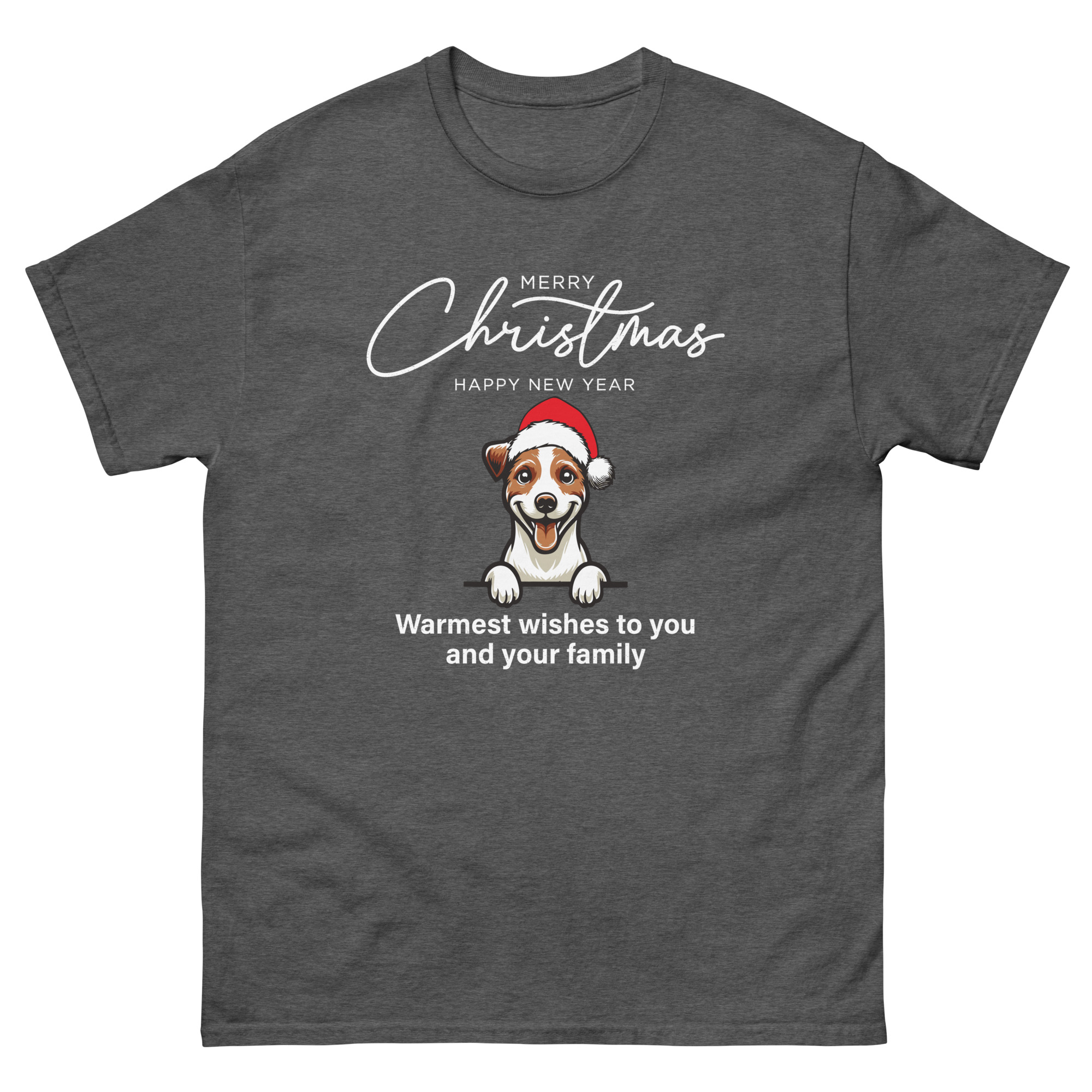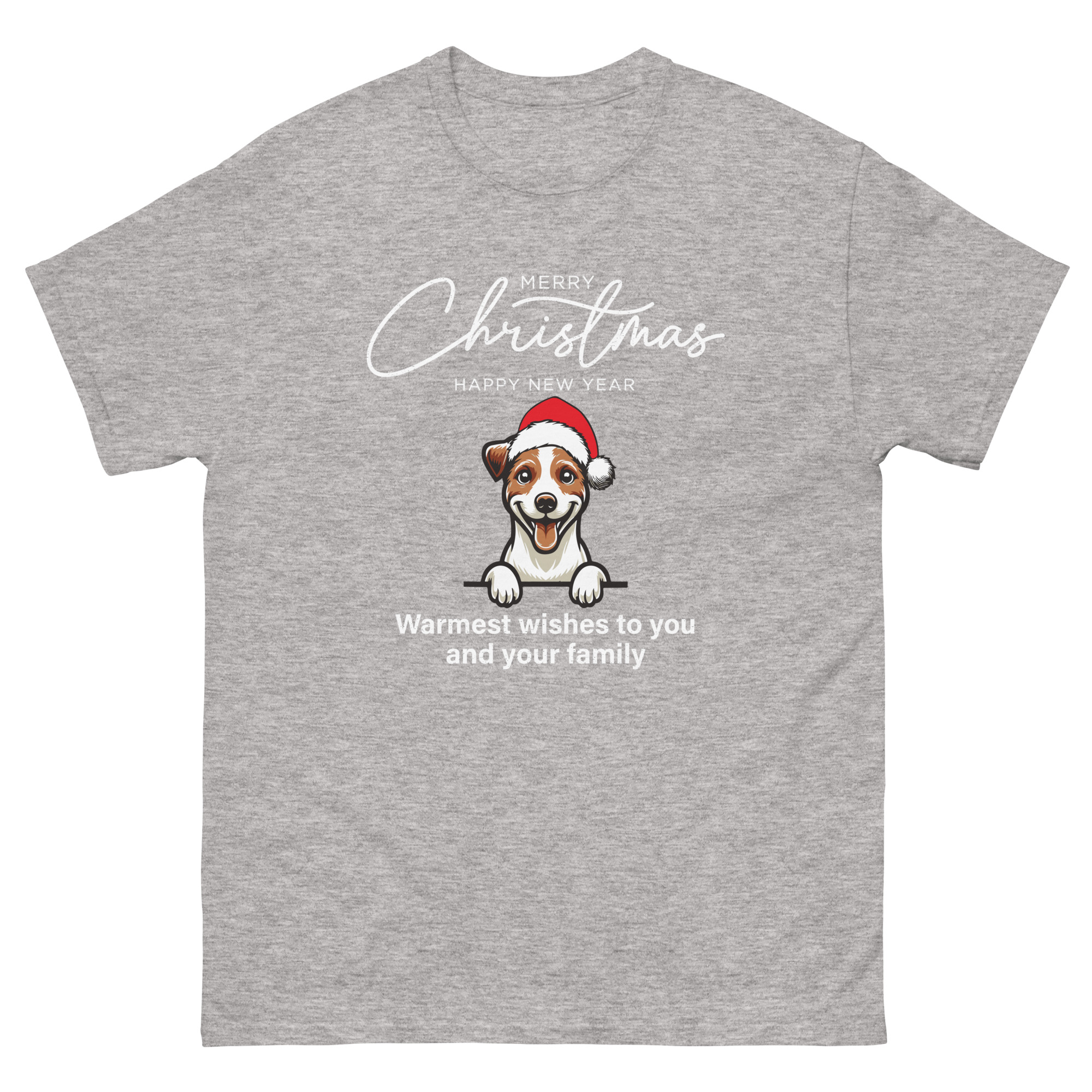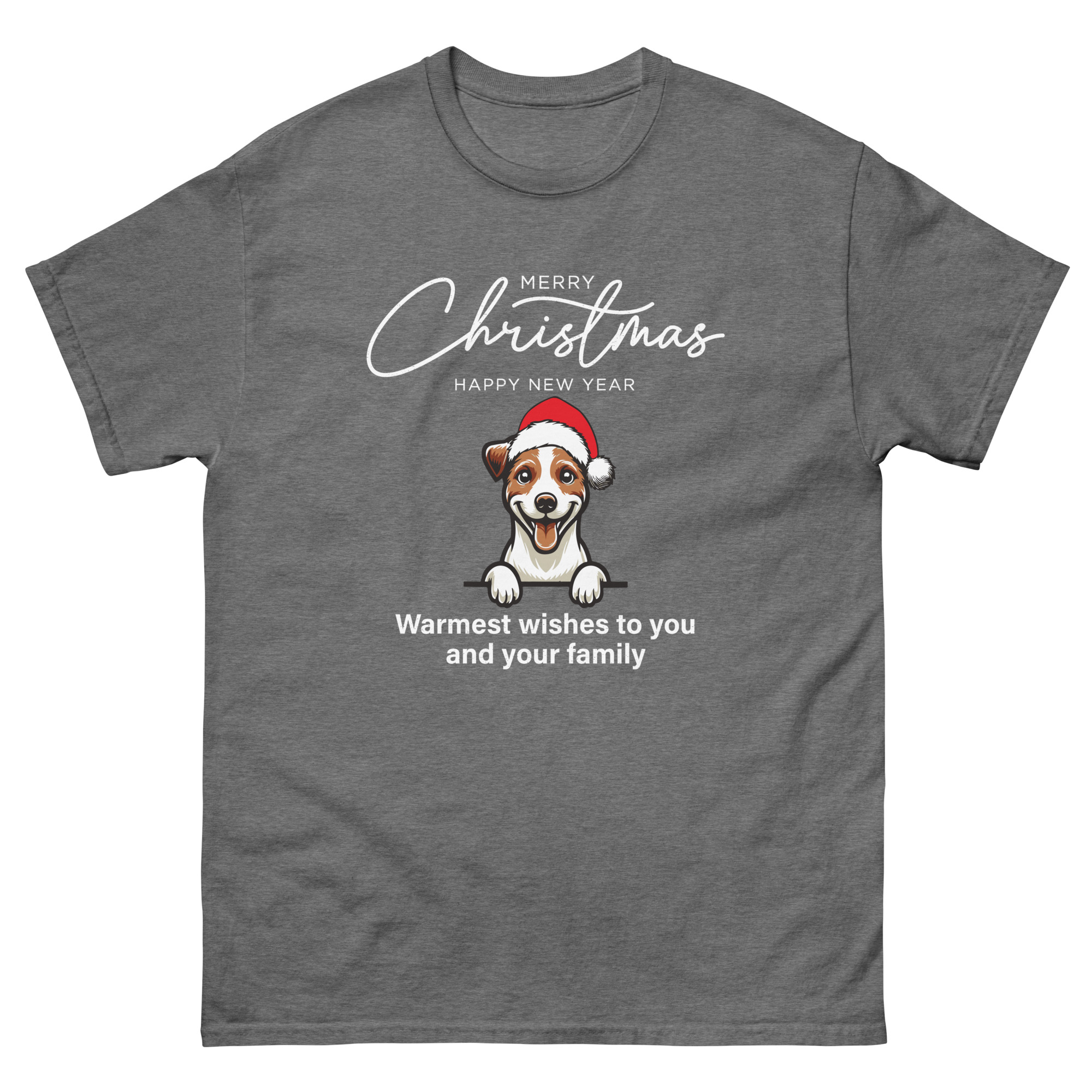 Cute Dog with Santa Hat Christmas T-Shirt – Unisex Classic Tee | Gildan 5000