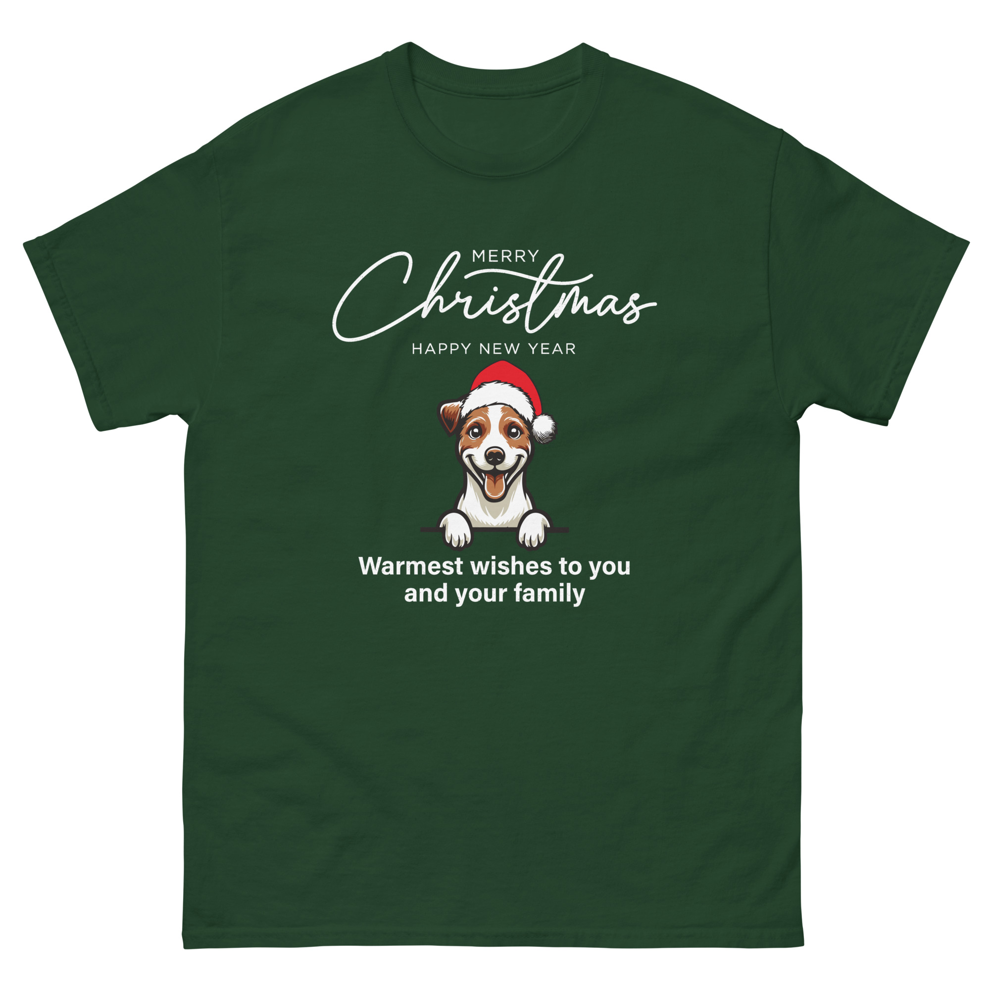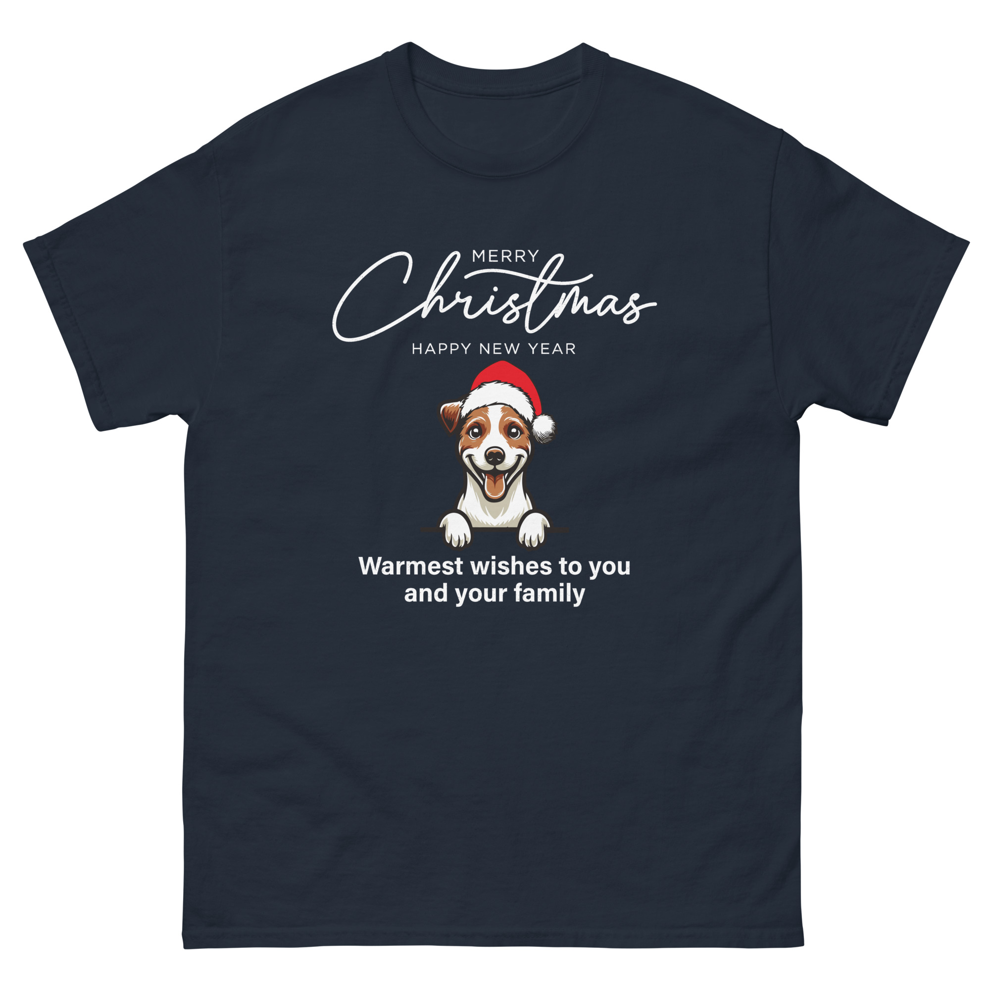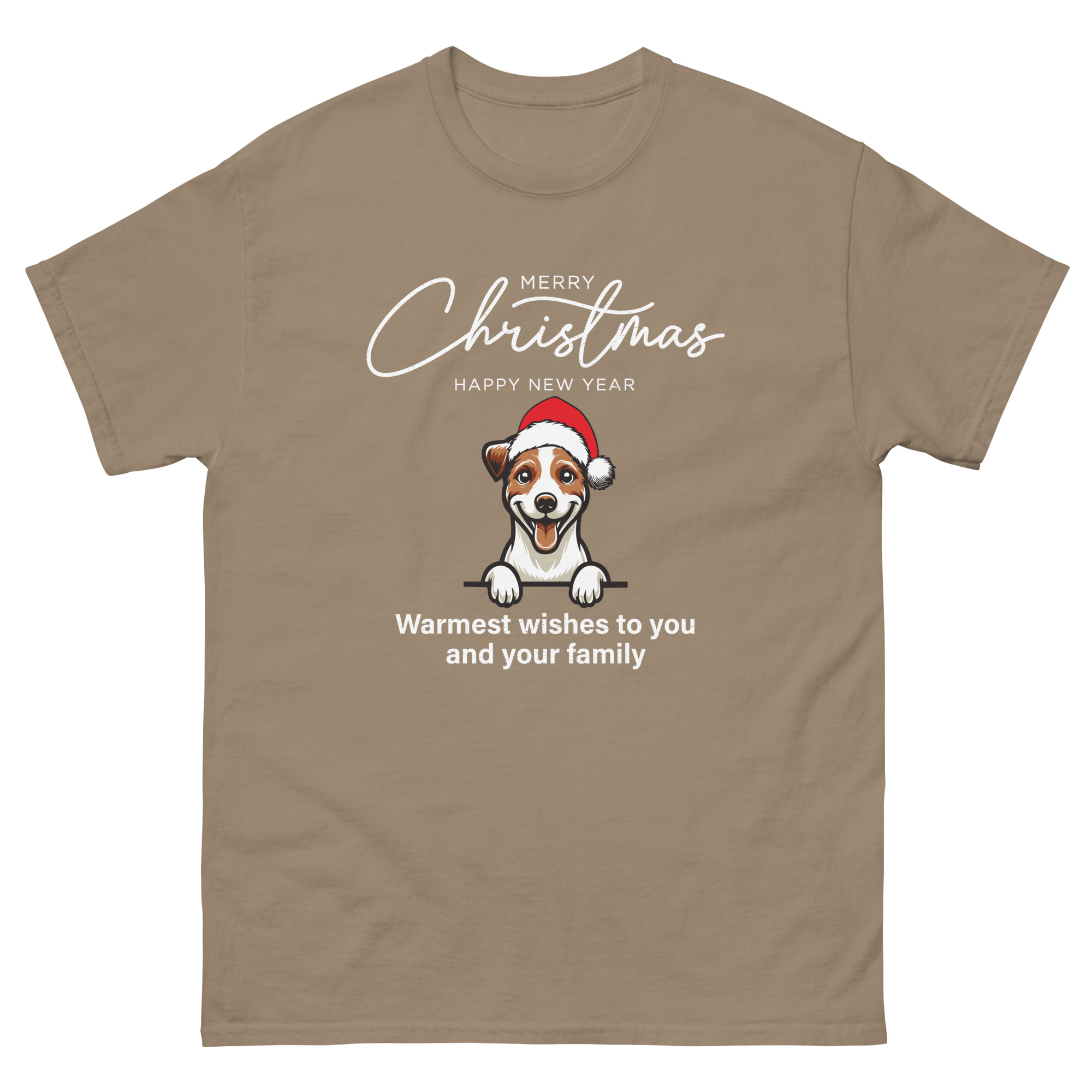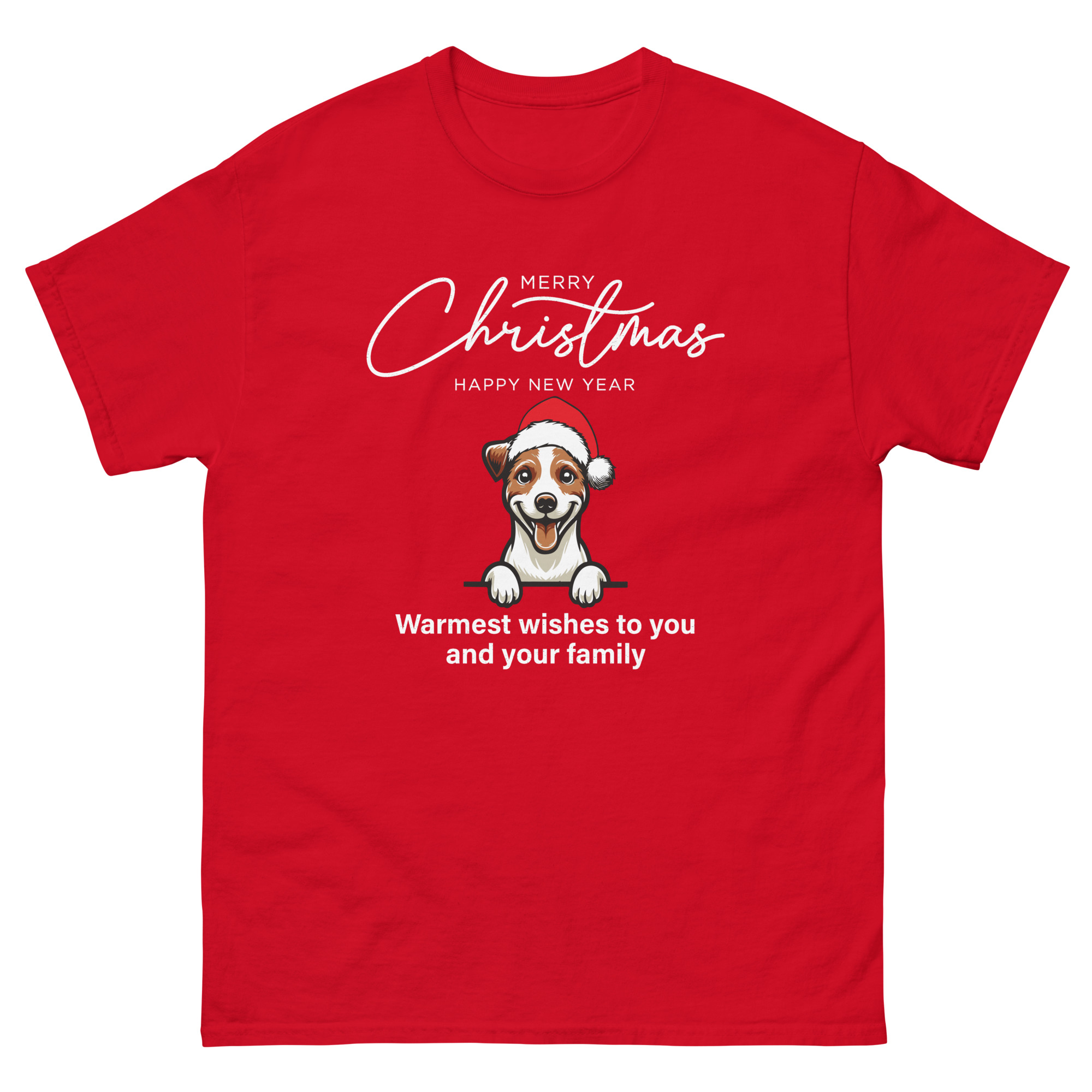 Cute Dog with Santa Hat Christmas T-Shirt – Unisex Classic Tee | Gildan 5000